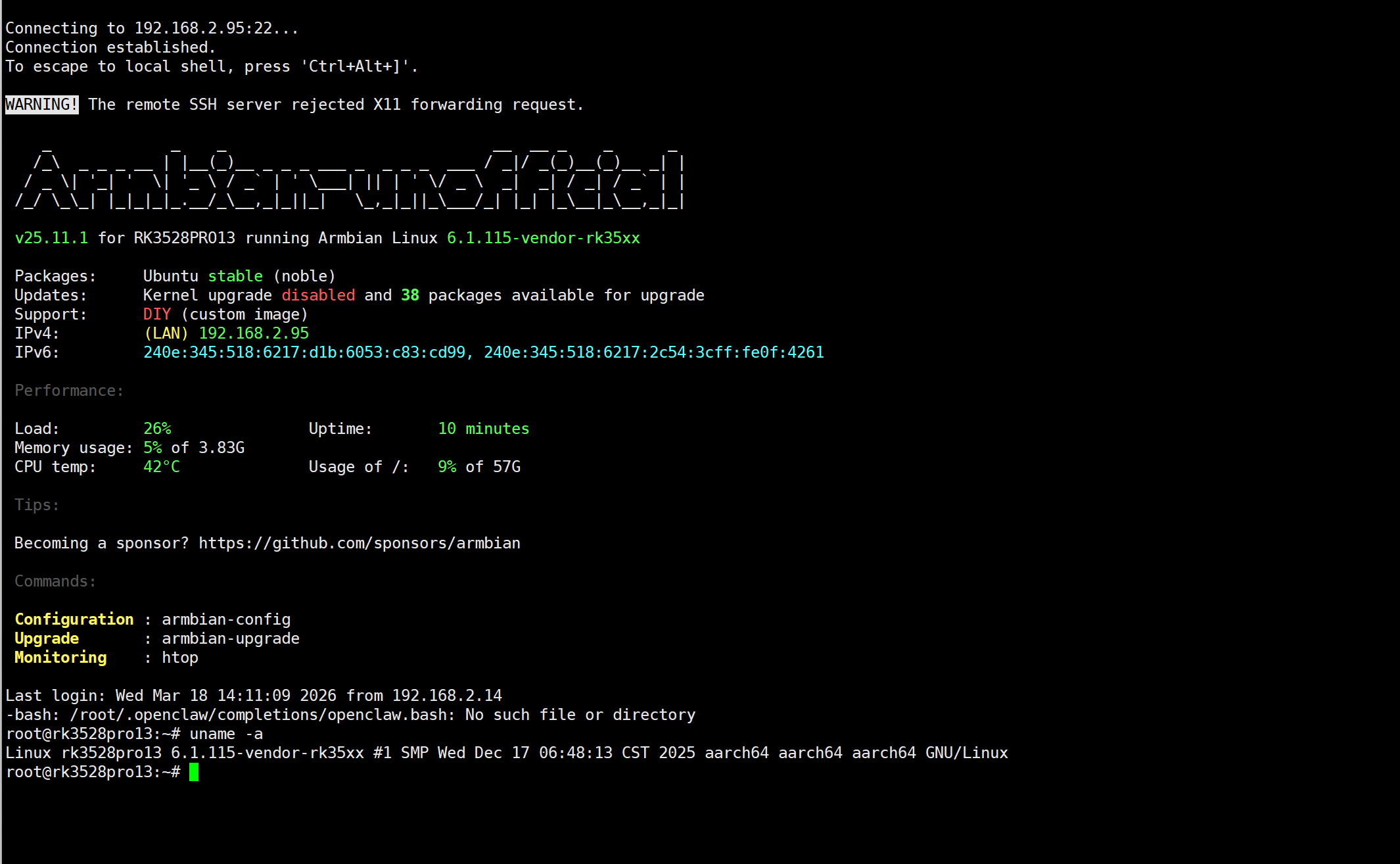 Armbian Ubuntu linux6.1服务器版本,电源使用5V2A